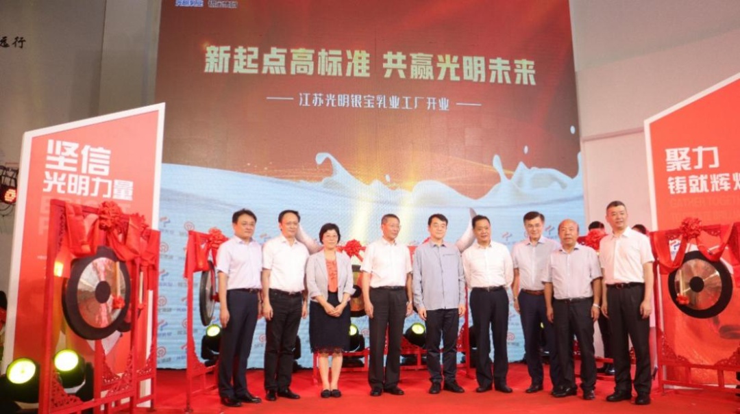 据悉,盐城市委书记、市人大常委会主任戴源,市委副书记陈红红,射阳县委书记唐敬,县委副书记、县长吴冈玉,江苏省广播电视总台党委委员、城市频道总监崔峰,光明食品(集团)有限公司党委书记、董事长是明芳,党委副书记、总裁刘平,光明乳业股份有限公司党委书记、董事长濮韶华,党委副书记、总裁罗海,江苏银宝控股集团有限公司党委书记、董事长王强,党委副书记、总经理尹同阳等领导嘉宾出席了江苏光明银宝乳业工厂开业活动。