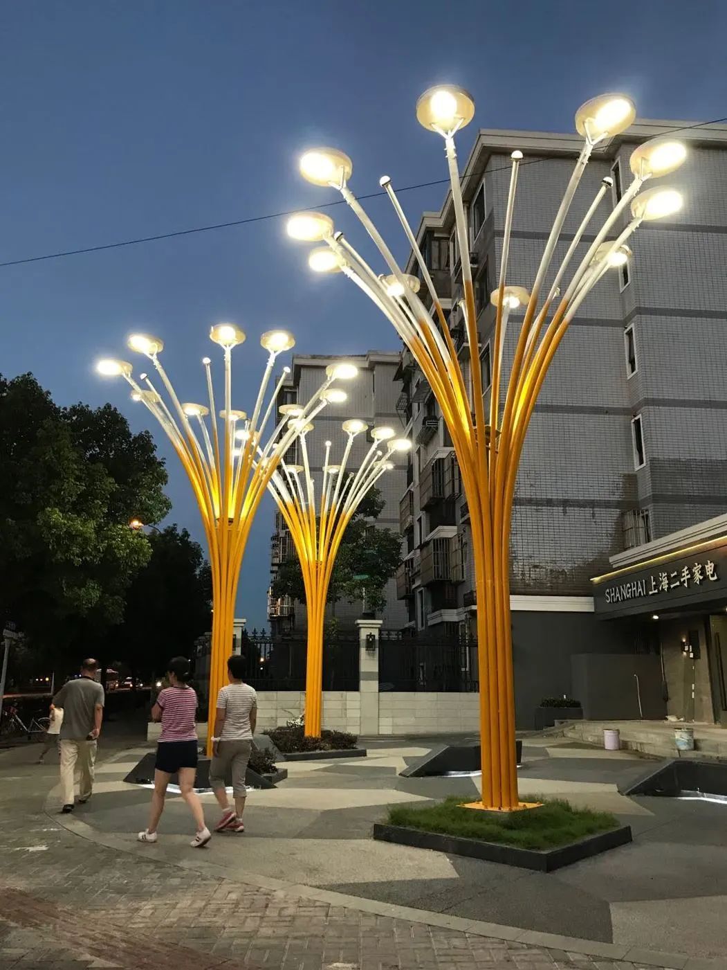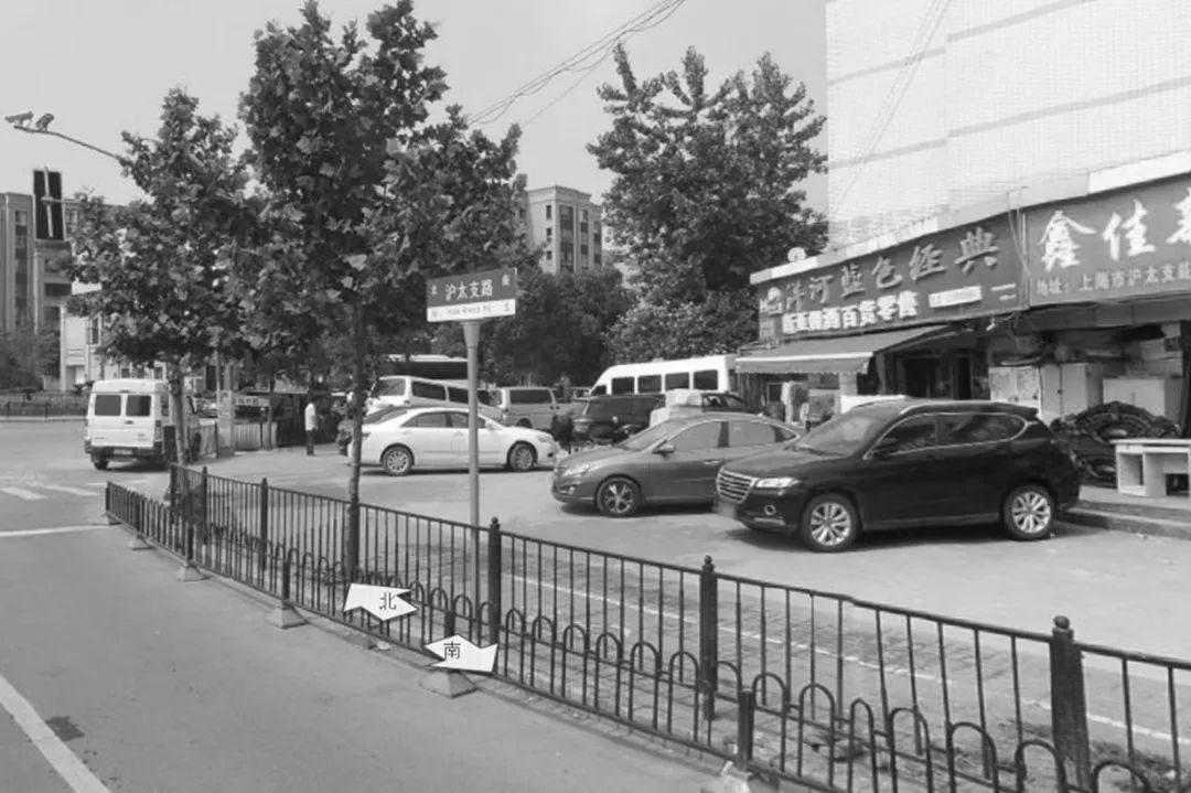 ▲沪太支路改造前后对比。多边形铺装、异形座椅和花池,其间点缀三组太阳树景观灯装置,有效防止机动车临时停车,提升街道景观形象和夜间照明。