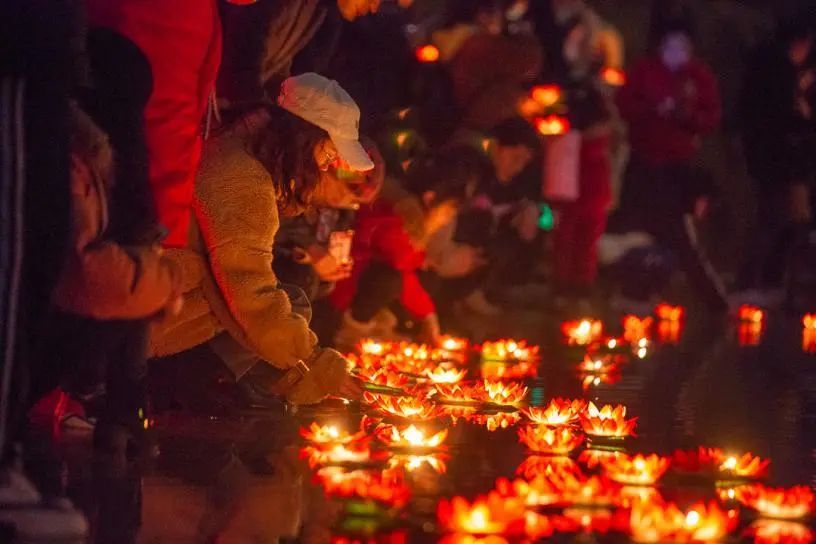 沉浸式的灯光秀中,放一盏莲花灯许一个心愿