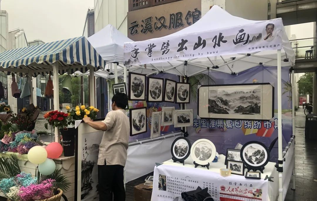 现场汇集了N名的手艺人和设计师,他们用创新点亮传统文化,让简单的生活物件有了更多的文化内涵。非物质文化遗产指掌画“大师”李落义与他的作品也出现在朱里雅集缤纷市集现场。