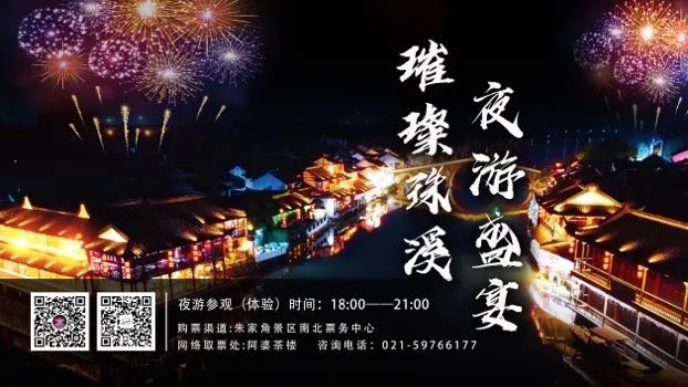 线上购票渠道现已开放,扫描下方二维码,进入【夜游珠溪】小程序,在线购买电子票,并在阿婆茶楼换取纸质票;