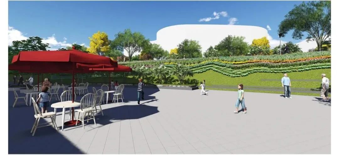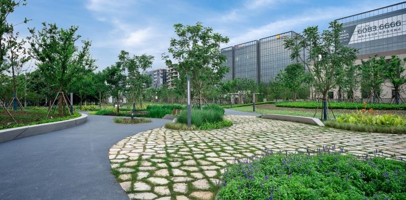 此外,还有长1.1公里、宽3米的绿道慢行系统,路面材料采用灰色的彩色透水混凝土。
