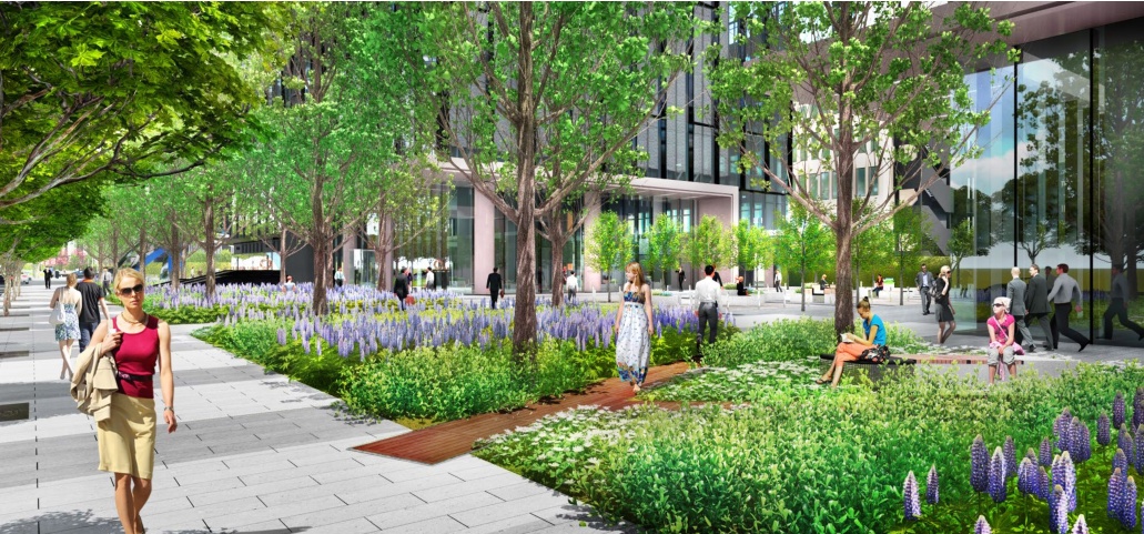 记者获悉,以“生态”为主题的七宝生态商务区,除依托一路之隔的闵行文化公园外,商务区内部的四条景观绿轴也在抓紧建设,其中南北沿横沥港滨河绿化轴已对外开放,新龙路绿化轴(一期)7月底开放,吴中路绿化轴将在年底前与接壤的商务区项目同步开放,中央景观轴计划明年建成开放。开放后,不仅会为商务区近8万的商务人士带来沉浸式绿色办公环境,也将成为周边居民服务日常休闲的好去处。