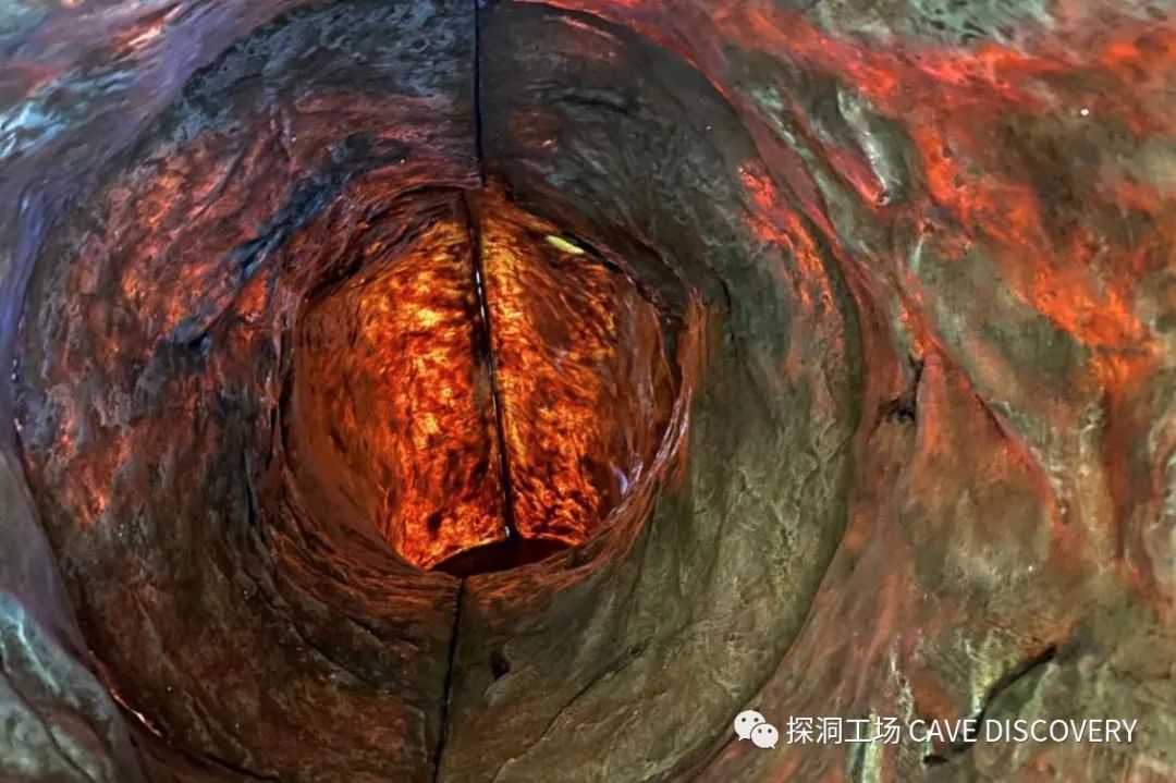 从洞口就看到火山岩浆,