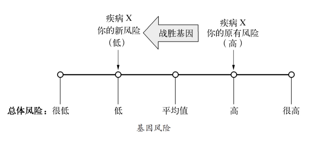如果你降低了你的非遗传风险,即使你的遗传风险保持不变,那么你患病的总风险仍会降低。战胜疾病的最佳方案是永远不遇到疾病,避开疾病的最佳途径是通过基因检测和预测医学获得先验知识。通过预测未来,你就能够改变未来。