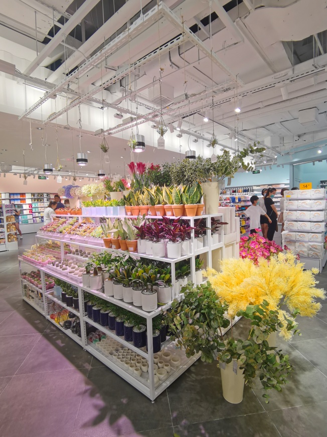 小巧的多肉、常青的矮绿植...各类绿植被错落有致地摆放在货架上,买回家就能点缀心情。如果担心自己无法照顾,也可直接选购逼真的仿真花。