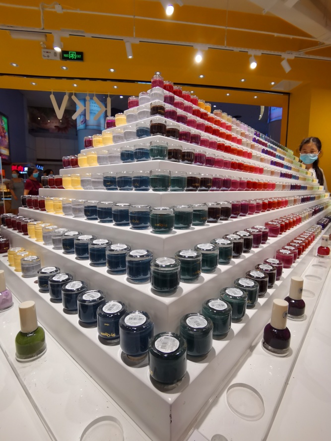 “指甲油金字塔”上整齐摆放着可撕拉指甲油,不论是御姐大红色系还是清新莫兰迪色系,统统都给精致小姐姐安排上,仅9.9元/瓶。