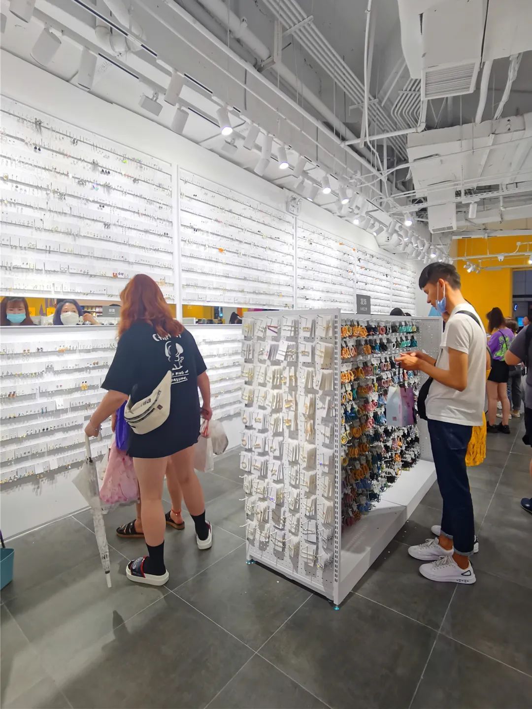 一整面墙的时尚耳钉,款式多样,一杯奶茶钱就能当场选到心仪的饰品。项链、手链、头饰、发圈等小物件也多到让人挑花了眼。