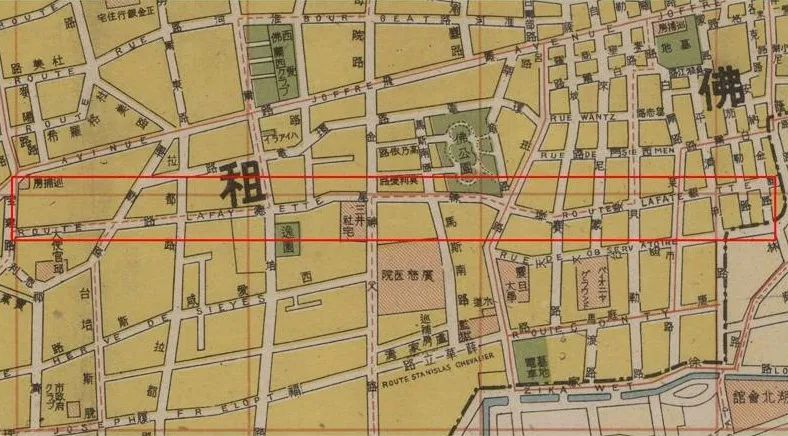 1943年上海地图中标识的辣斐德路