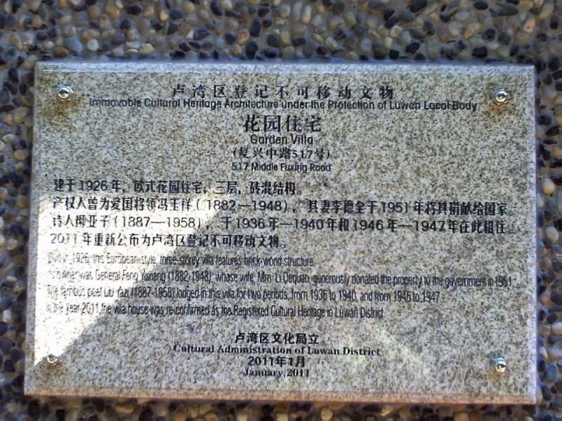 复兴中路517号,冯玉祥将军旧居。柳亚子先生也曾经在517号借居。这本是冯家的私产,1950年代,冯玉祥夫人李德全将此楼捐给了国家,于是它成为了公房。
