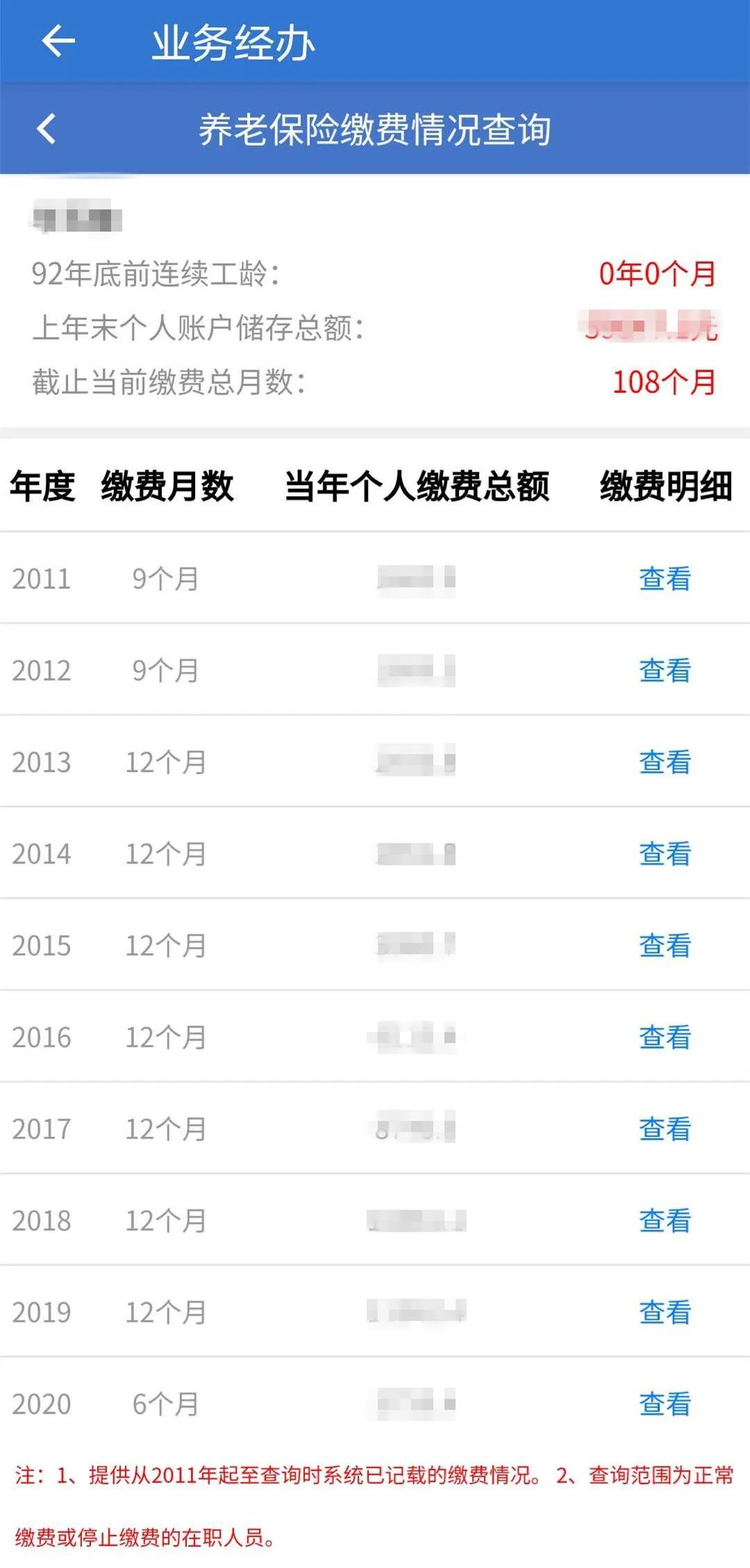 根据提示登录后,依次点击“社会保险”、“城保缴费查询”目录下的“养老保险缴费情况查询”项目,可实时查阅2011年以来的月度缴费明细。