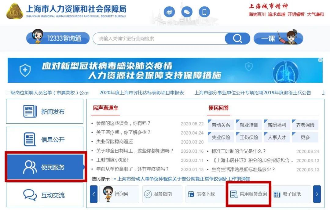 点击进入“便民服务”下的“常用服务查询”栏目。