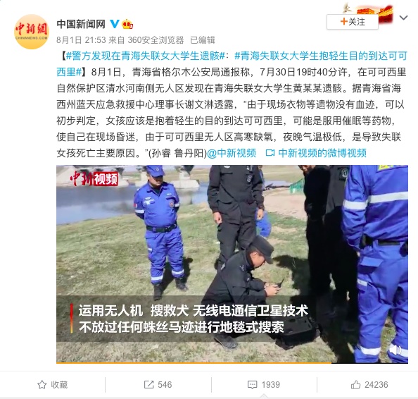 点击回顾→揪心!女大学生独自去青海旅游,已失联18天!