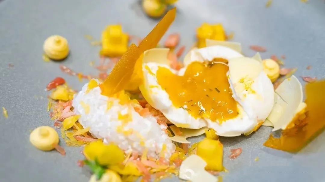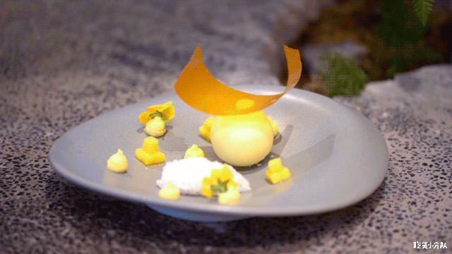 “杨枝甘露”灵感来源于传统的港式甜品,却把每一个部分拆解重组,椰浆由液体变成固体、芒果和西柚由绵变脆,每一个部分都让你惊喜。