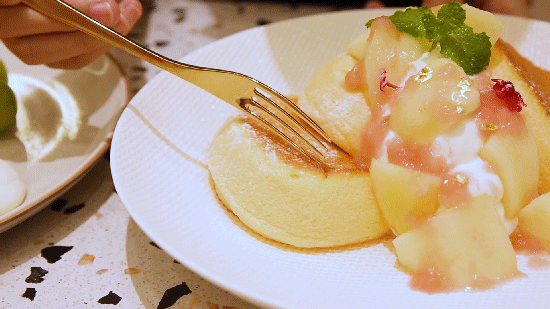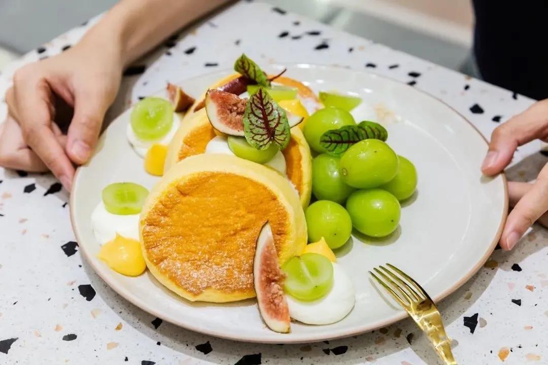 当季有青提和蜜桃两款松饼,水果都超级新鲜水分足,青提选用日本晴王的品种,每颗个头都很大,吃起来又甜又脆。连鸡蛋都是可以直接生食的日本伊势丹鸡蛋。