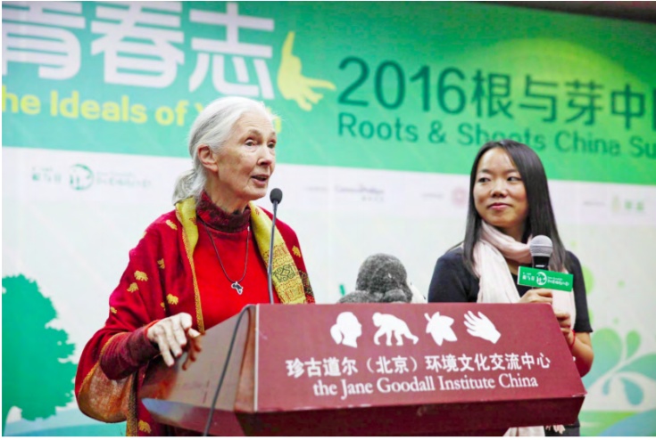 走出贡贝的珍·古道尔把目光从黑猩猩扩展到了所有动植物,以及和我们人类共同生活其中的大自然。她马不停蹄,一年中有300天行走在世界各地,做报告、开讲座、会晤环境官员与环保人士……到处点燃环保的希望之火。1991年,珍创立了“根与芽”环保组织,鼓励全球的年轻人关心环境、关爱动物、关怀社区,用自己的力量给世界带来变化。与大多数谈论数据、事实的科学家不同,面对年轻人时,古道尔谈得最多的是“希望”,她相信:“给予年轻人希望,给年轻人展示环保美丽的一面,感动人的一面,让他们对未来充满希望”。