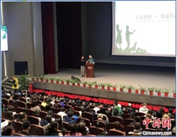 2019年11月17日,珍·古道尔在成都博物馆以《人与自然:和谐与未来》为主题,与成都观众分享了她对“人与自然”的理解以及环境保护的重要性。