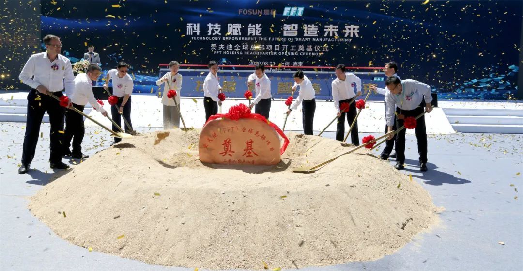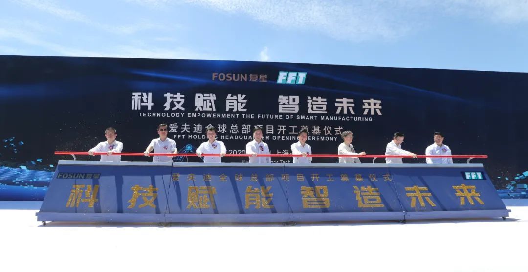 上海市经济和信息化委员会主任吴金城、副主任张建明,嘉定区委书记陆方舟,嘉定区委副书记、代区长高香,嘉定区委常委、副区长沈华棣,复星国际联席董事长汪群斌,复星全球合伙人、爱夫迪董事长张良森等出席开工仪式,并共同为爱夫迪(FFT)全球总部项目工程培土奠基。