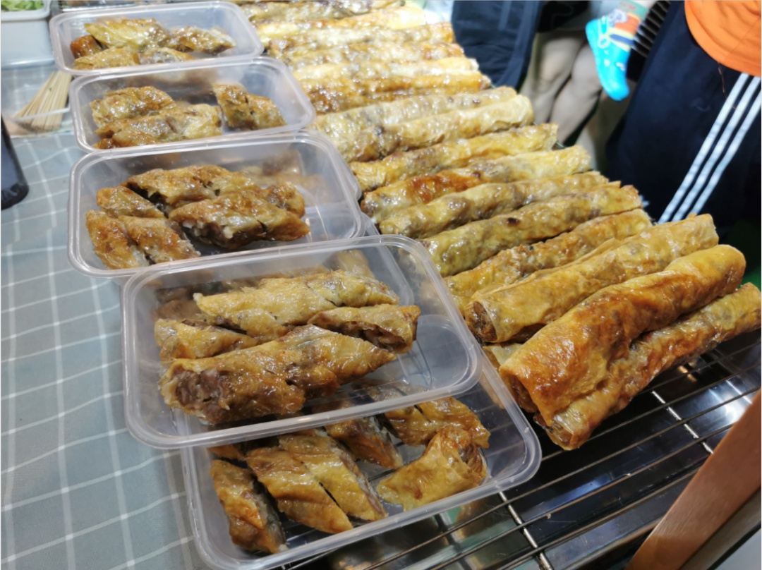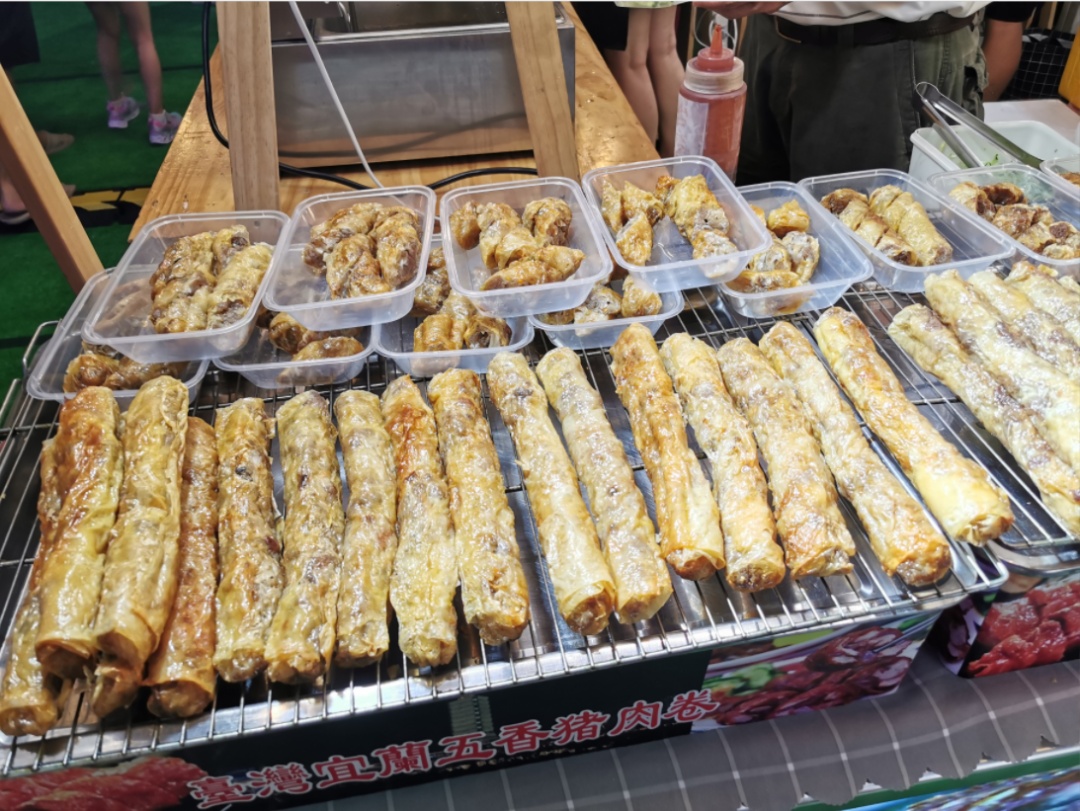 隔壁的大香肠馋得人口水直流,另一边来自台湾宜兰的五香肉卷更是让人垂涎欲滴。包在腐皮里的肉卷,放在油锅里酥油一炸,再配上老板秘制的酱料,咬上一口,唇齿留香。