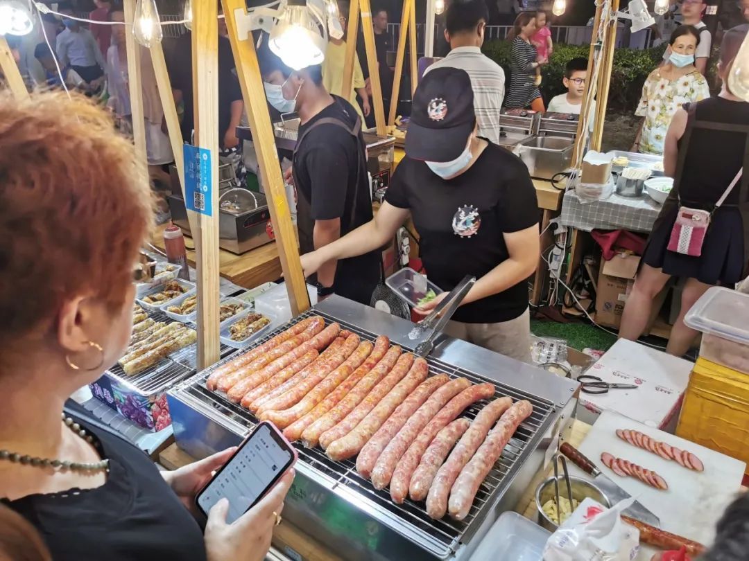 8月1日晚上七点半,位于宝山顾村的丹霞街市正式启动。活动现场,除了有乐队的助兴表演,琳琅满目的台湾美食更是让吃货们目不暇接。其中看,一款台湾大香肠吸引了不少市民的注意。