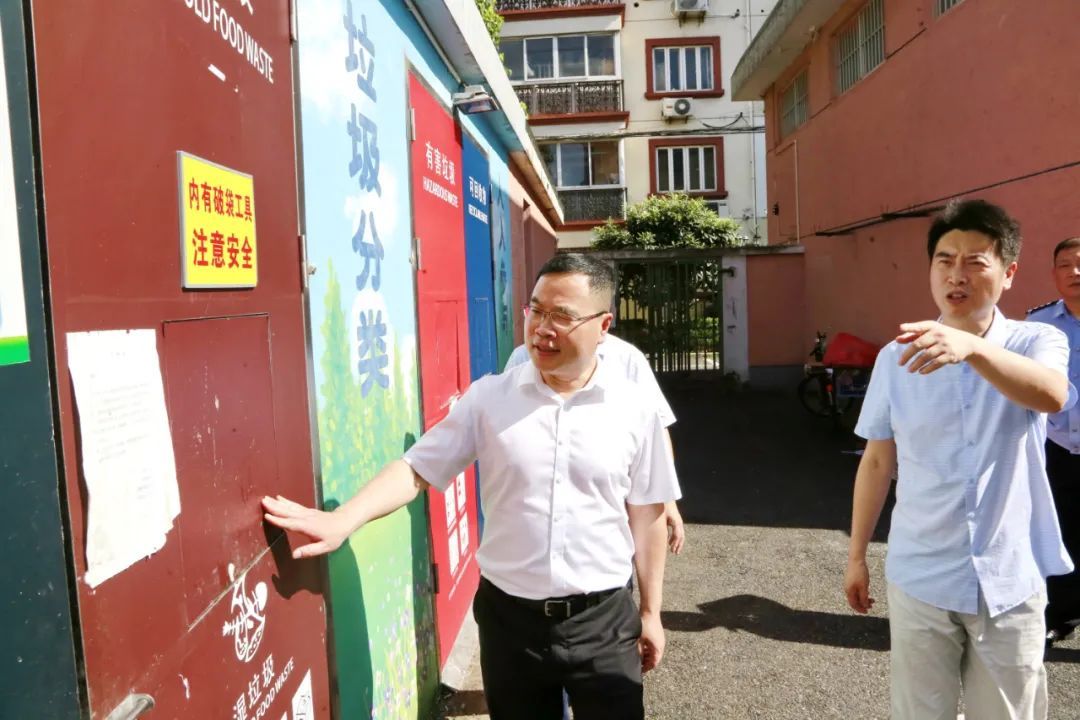 在古美西路316弄小区,陈宇剑一行检查了社区的垃圾分类厢房、集合了未成年人活动场所、学雷锋志愿服务站功能的社区综合文化服务中心等点位,还查看了居民楼道内的情况。