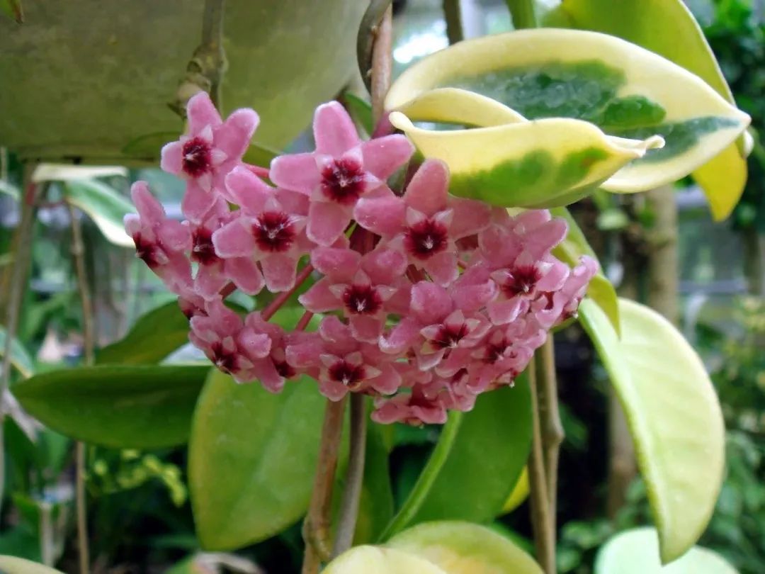 球兰属Hoya这些附生植物的茎和枝都有攀援。叶子的形状和大小是可变的,在某些物种中,叶子又厚又多汁。花序簇生,花冠星状有蜡质,有花香味。其实球兰并不算严格意义上的多肉植物,不过它的叶片较为肉质,有一定的抗旱能力,所以也有不少多肉爱好者会将其视为多肉植物。