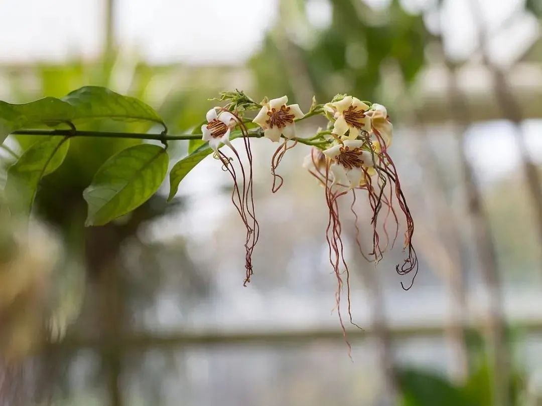 直径3厘米的花有5瓣,并呈现不同程度的黄色、褐色至紫红色斑点,会产生一种死动物的气味以吸引苍蝇。