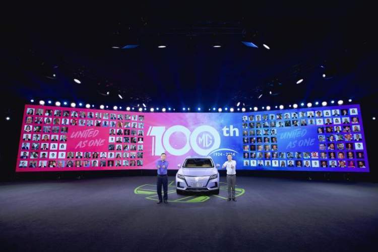 上汽集团总裁王晓秋、上汽集团总裁助理、国际业务部总经理余德与全球经销商云合影,共同期待见证MG一百周年的辉煌时刻
