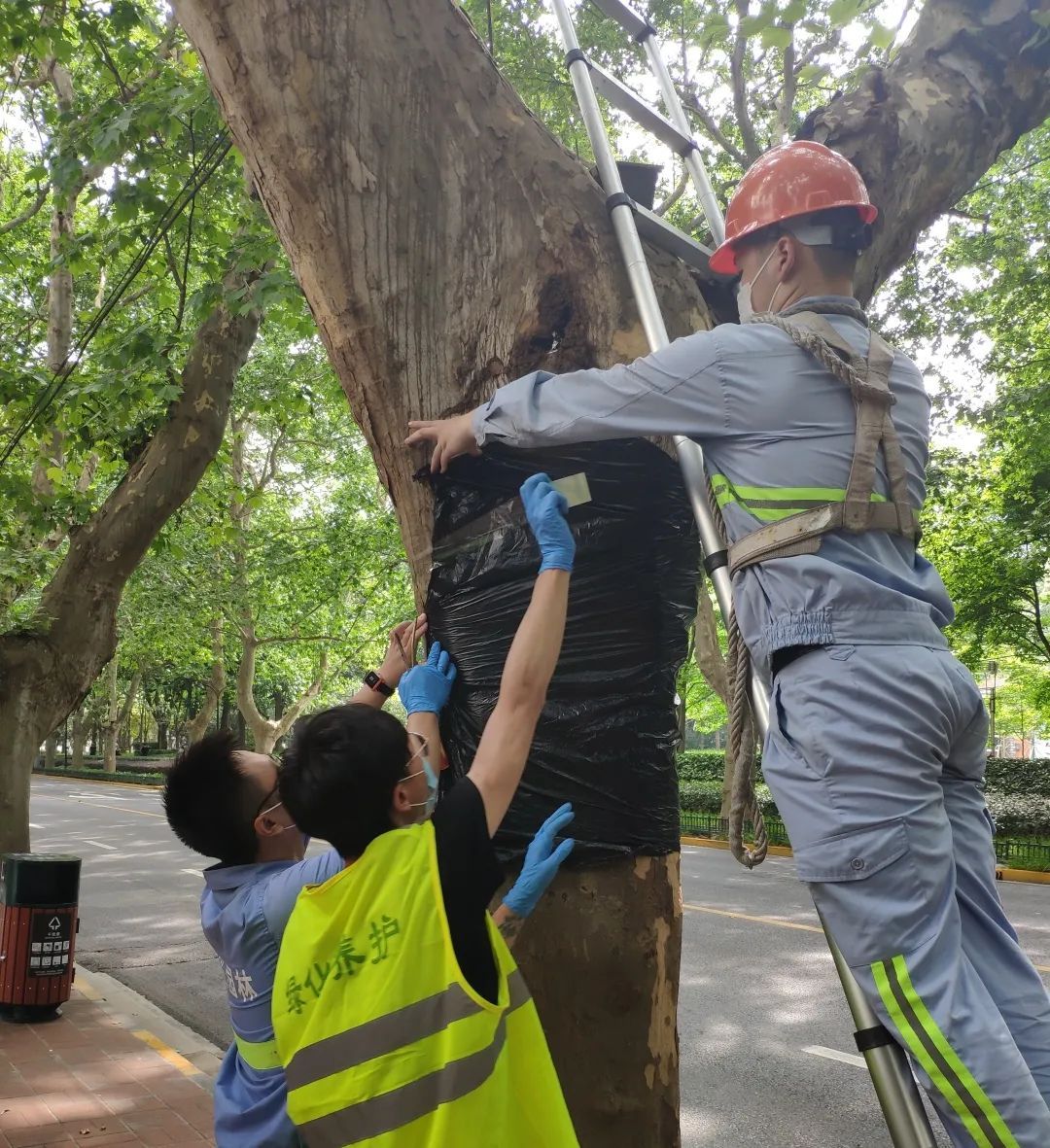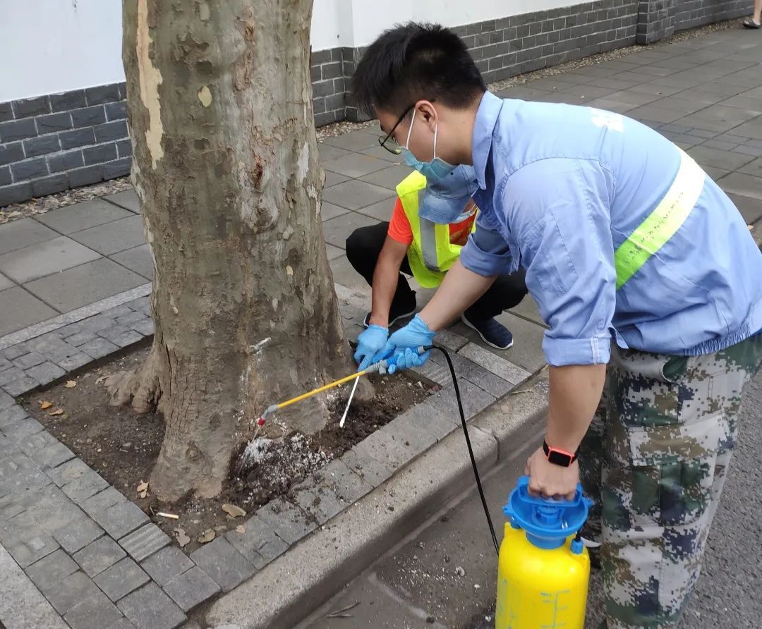 防治小组由专业行道树队员组成,小组成员包括有80后、90后退伍军人和党员,每位成员均具备4年以上树木白蚁防治经验,而小组长曹震则是在这个岗位上默默奋斗了9年,目前本小组人员可以胜任工作区域的常规调查、监测与防控工作。