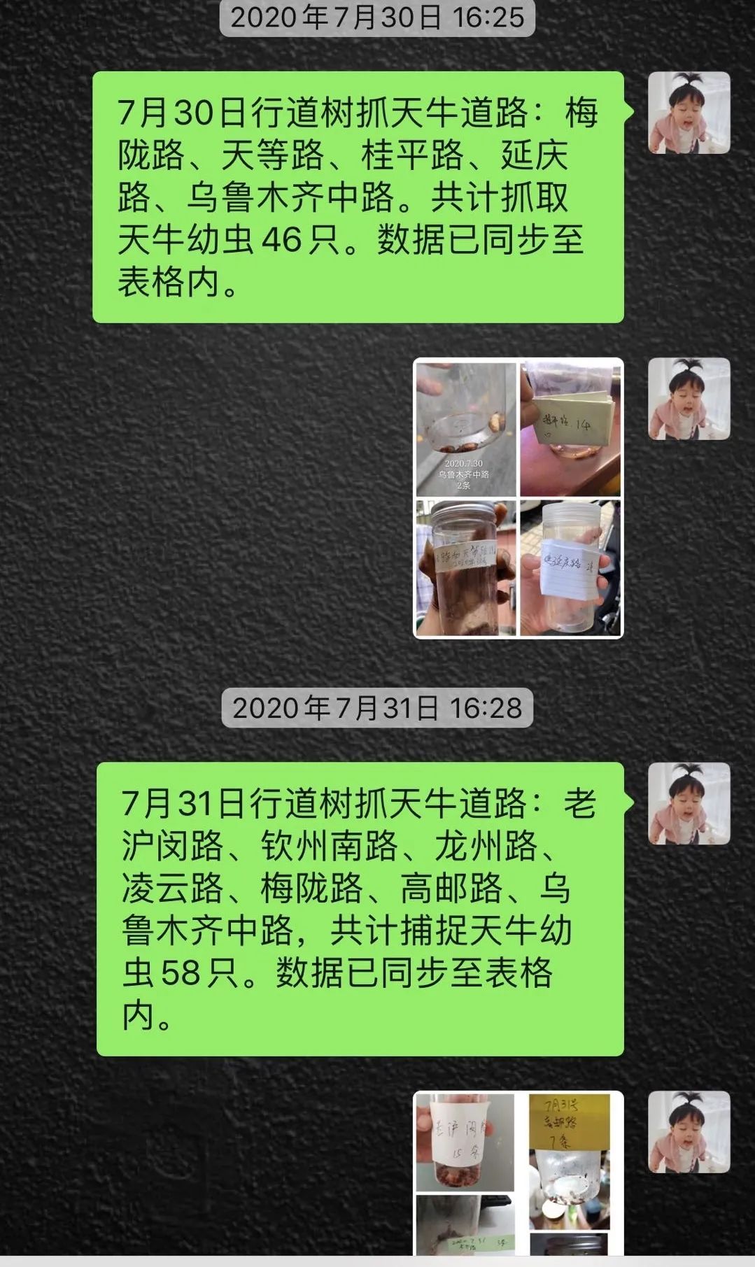 ②养护部门开展人工钩除幼虫并销毁的防治工作,并每日汇报抓取数量及将数据同步至汇总表格内。
