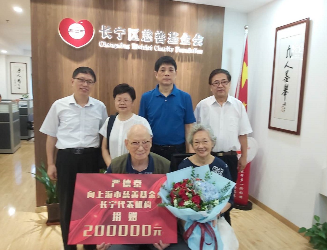 7月10日,长宁区政协之友社社员、著名水彩画家严德泰和夫人朱兆顺在之友社理事长刘春景等陪同下来到长宁区慈善基金会捐款20万元。7月22日上午,笔者仪靖远专程拜访两位老人,对其进行了采访。