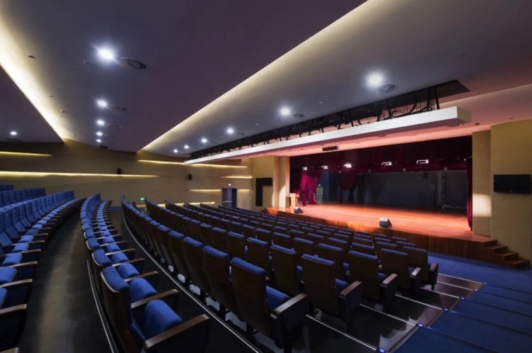 三楼是戏剧谷的多功能剧场。这里不但是名剧巡展的重要一站,也是艺术展示、音乐沙龙的集聚地。炫酷的灯光、高像素P2.5LED大屏、3D环绕立体音响、12排阶梯式座椅设计,一场场视听盛宴就此拉开序幕。