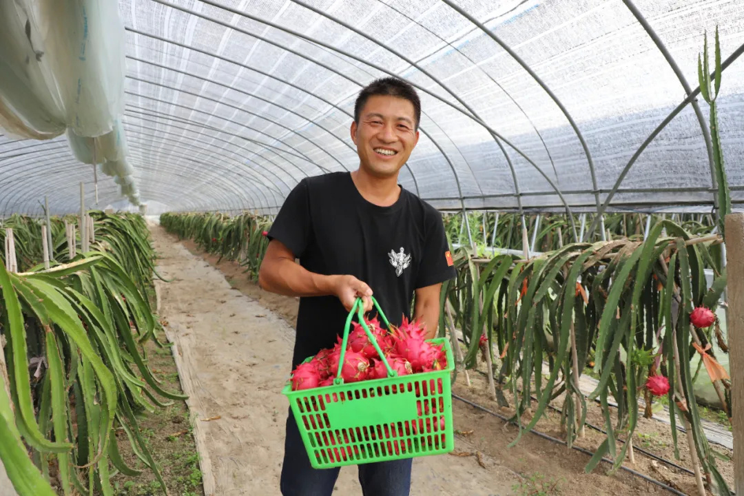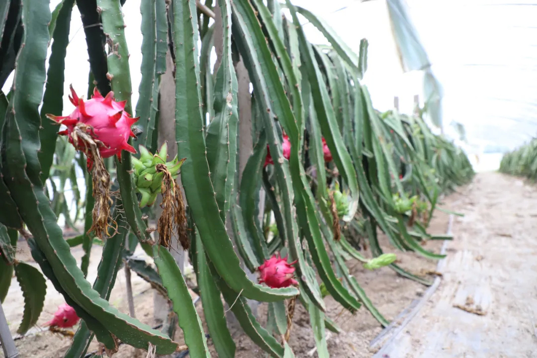 果园中种植的正是火龙果中极品——“蜜宝”,不大的个头着实惹人垂涎。