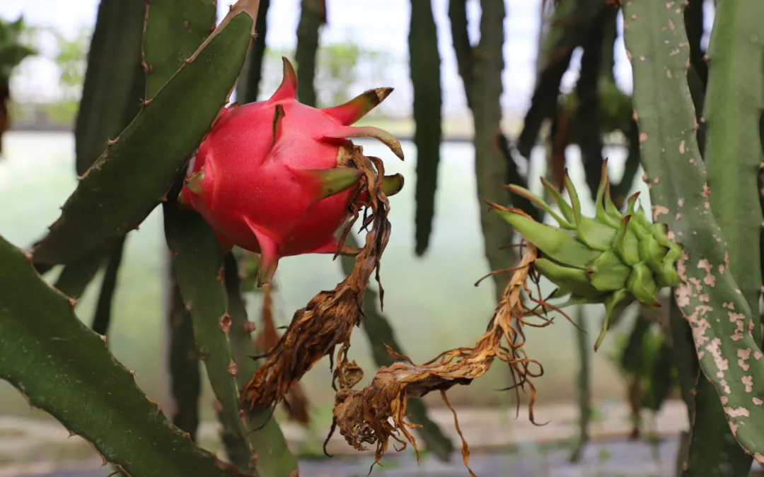 值得一提的是,市场上购买火龙果大都来自国内南方地区或越南等地进口,由于运输的原因果实到了6-7分熟就得采摘,而本地种植的“蜜宝”则要等到8分熟以上才会采摘,成熟度更高,甜度可达到20度以上。