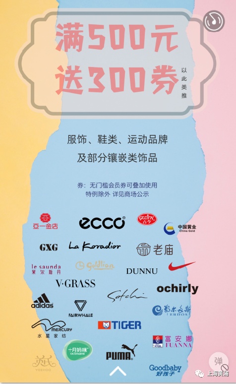 黄金珠宝饰品参加送券活动。老庙黄金、老凤祥、明牌,中国黄金镶嵌饰品满500送300券,谢瑞麟、周生生、六福镶嵌饰品满500送150券,镶嵌饰品既送券也收券。