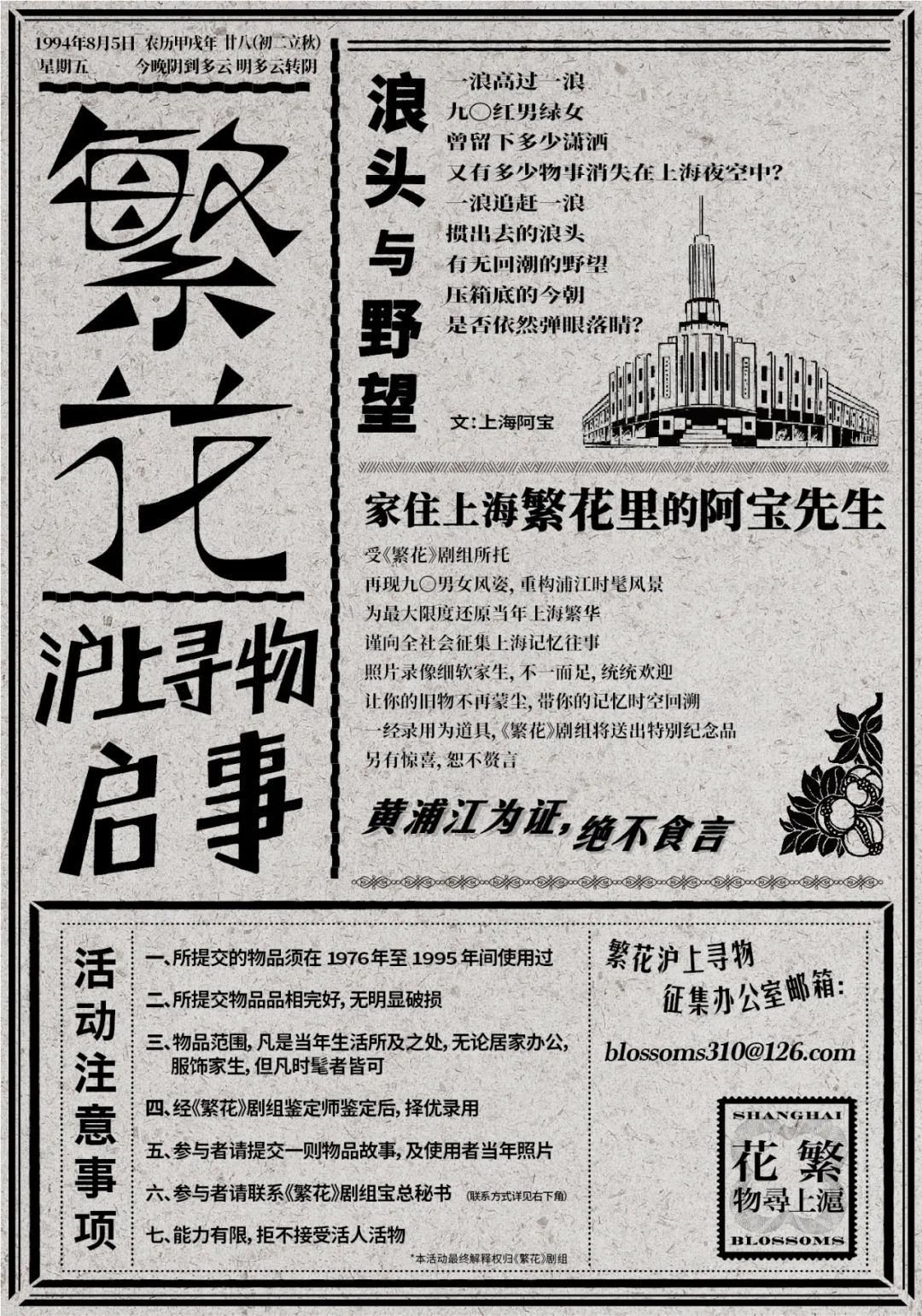 谢谢侬对这趟“《繁花》沪上寻物”活动个支持!侬个物事帮侬个回忆,阿拉已经收到。希望来年《繁花》开播也可以还侬一份回忆。