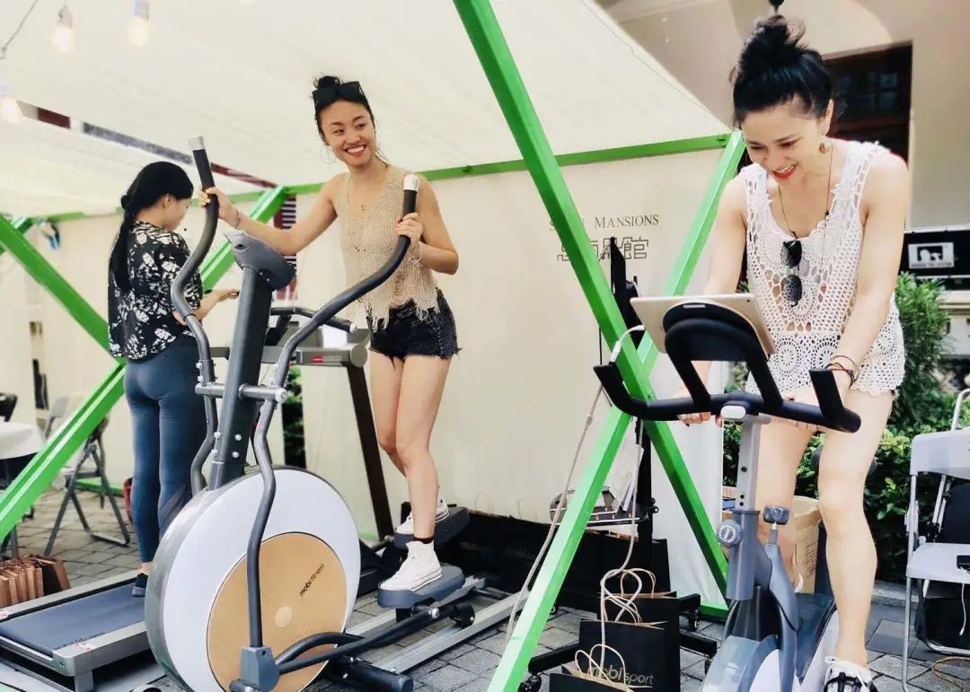 ▲一次性打卡业界首款全自动折叠跑步机、椭圆机、时尚款划船机(女性款)和galaxy动感单车