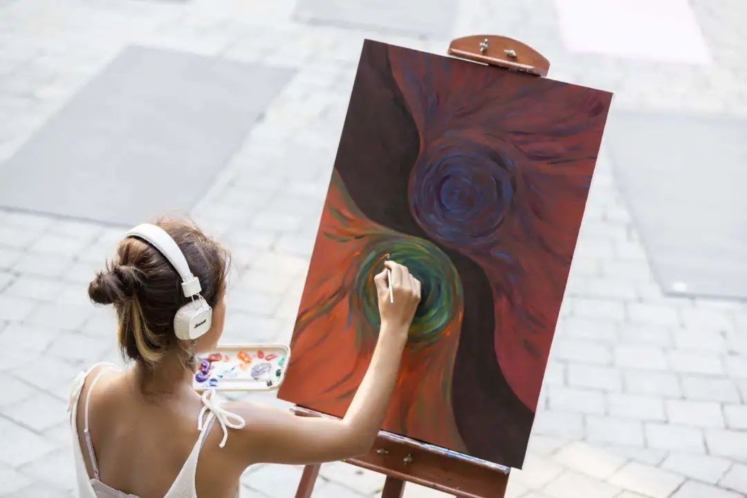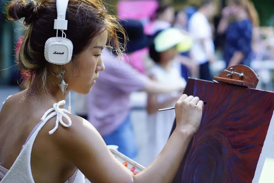 ▲艺术家通过瑜伽感受当下的灵感,现场创作艺术作品