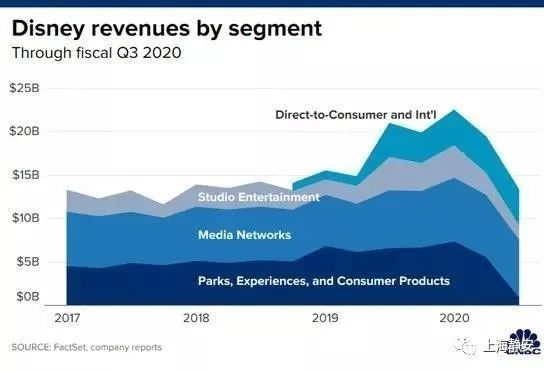 财报还称,迪士尼第三财季媒体网络业务营收66亿美元,同比下滑2%;主题乐园、体验及消费品业务营收9.83亿美元,同比暴跌85%;受疫情影响3月中旬以来其新电影一直无法上映,其影视娱乐业务17.4亿美元,同比下降55%;直接面向消费者和国际市场营收39.7亿美元,同比增长2%。
