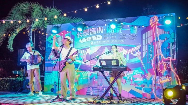 除了夜市,长泰广场还准备了丰盛的“文艺大餐”。周末晚上6点,现场乐队准时登场,点燃夜间舞台。记者了解到,在未来的夜市活动中,魔术、摇滚、民谣、爵士、街舞、脱口秀表演等节目都将为游客们一一呈现。