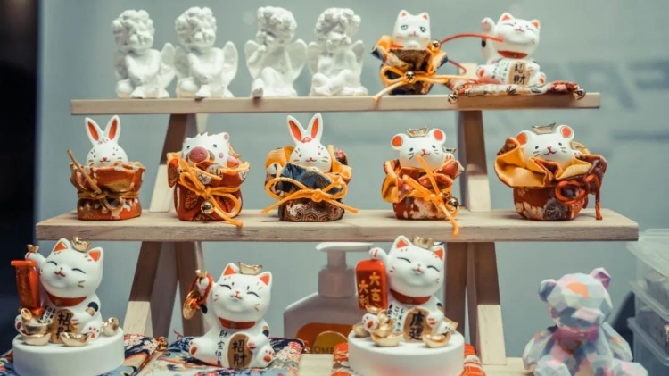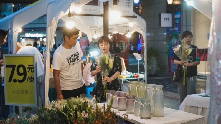 一字排开的摊位,人气超旺。选几样精美的日式餐具,给餐桌添一点新花样;花7.9元买一束鲜花,带回家装点客厅;尽情试戴DIY饰品,再也不怕在外撞款……