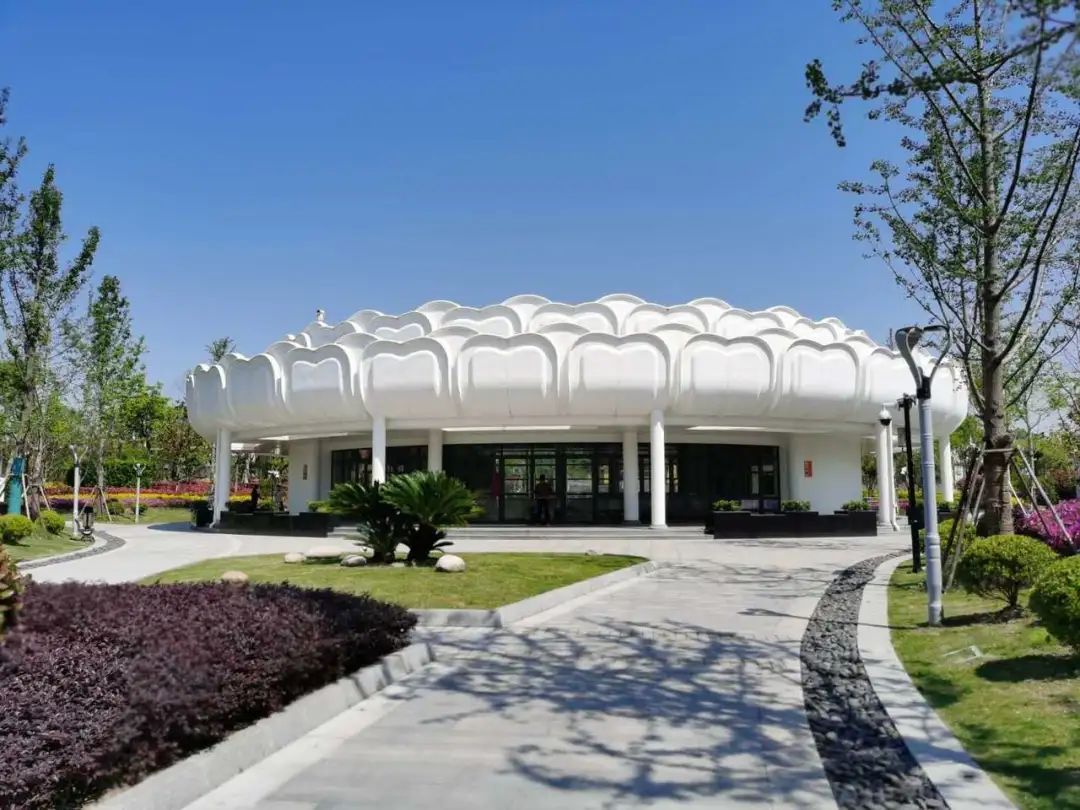 公园中还有很多莲花元素,被设计成睡莲形态的文化展示中心、莲花池塘,让人印象深刻。