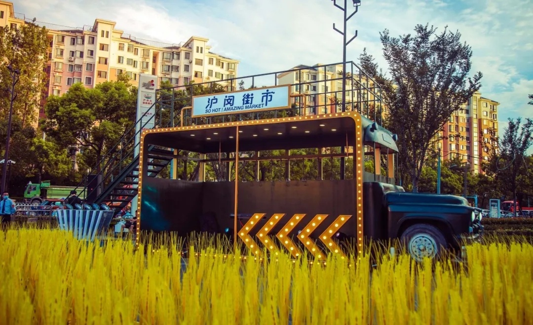 大片大片的麦穗灯在夜幕下摇曳出闪闪发光的麦浪,舞台则还原成了上海老式公交车,上演着摩登的歌舞,