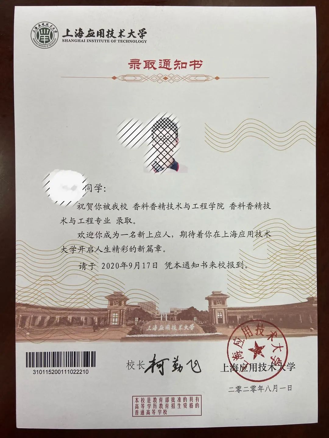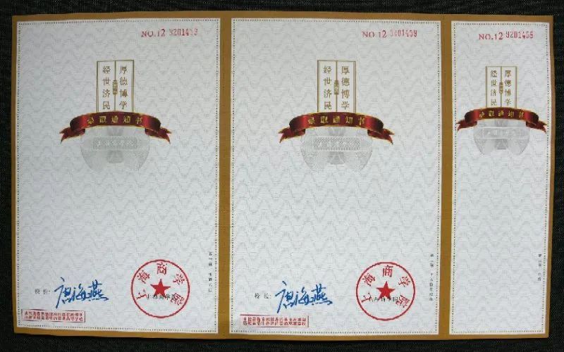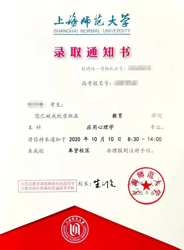 上海师范大学的录取通知书