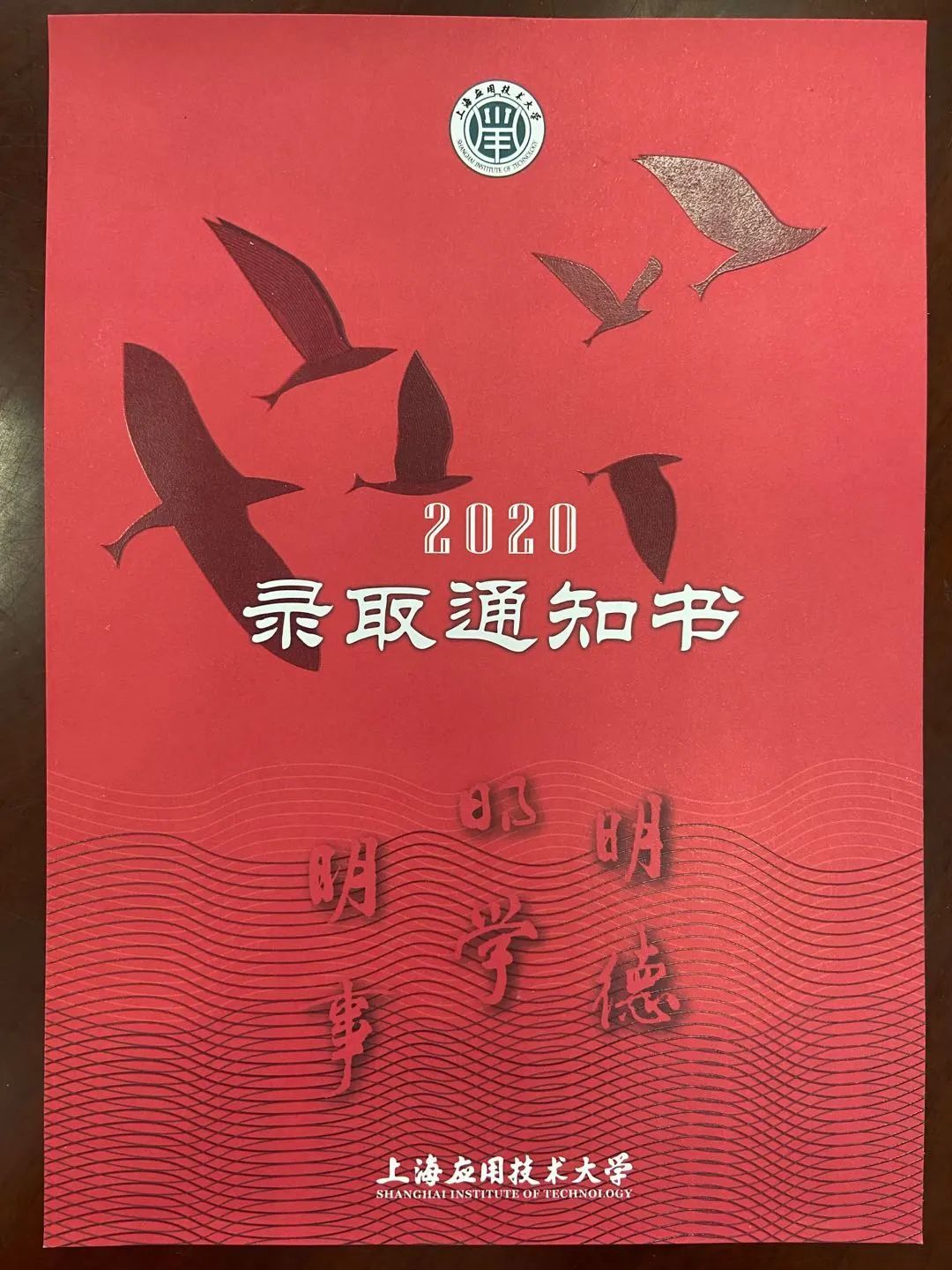 2020年的上海理工大学录取通知书