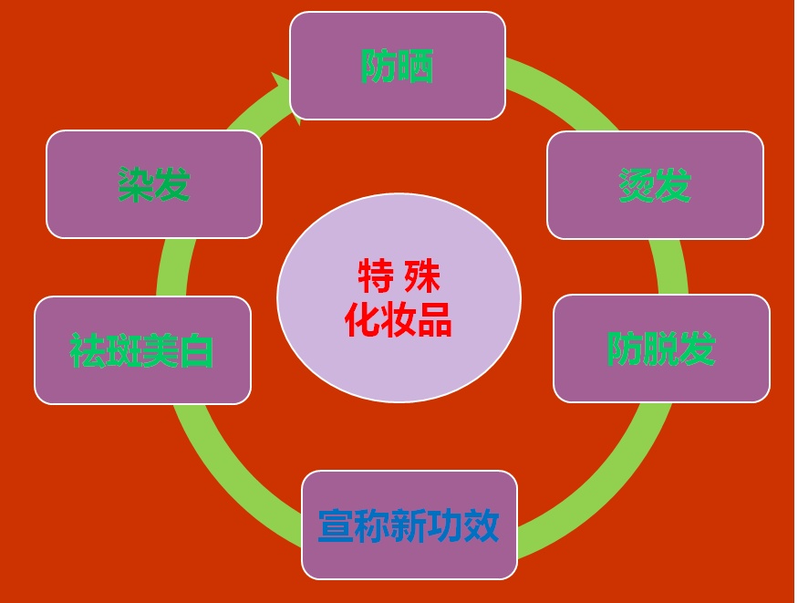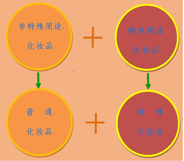 非特殊用途化妆品(旧条例)更名普通化妆品(新条例),特殊用途化妆品(旧条例)更名为特殊化妆品(新条例)。