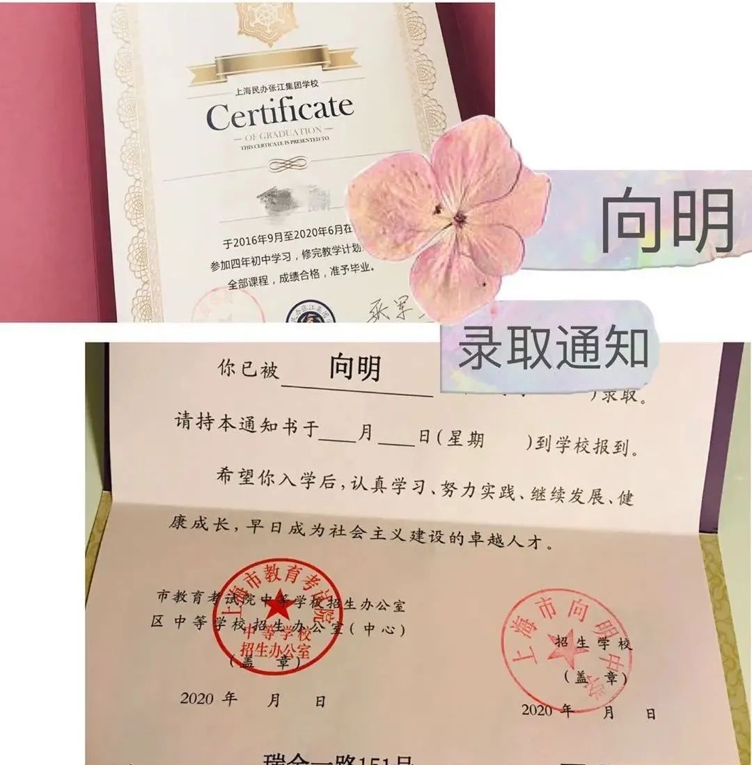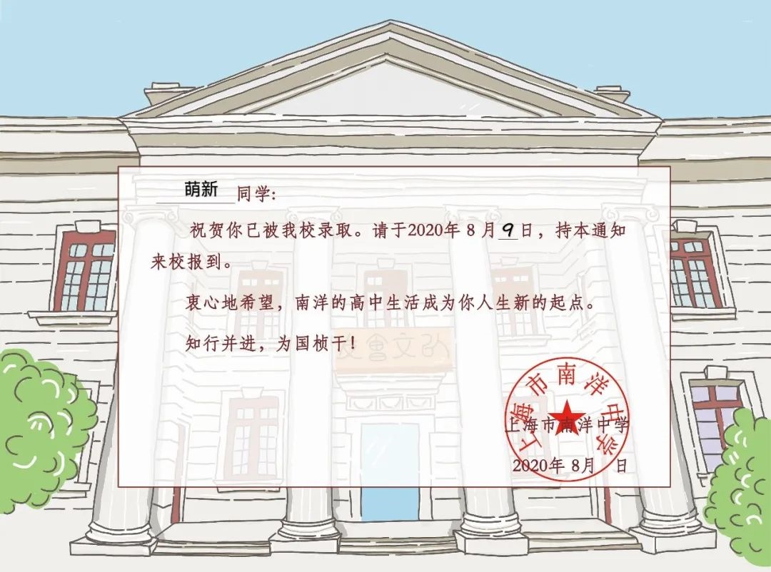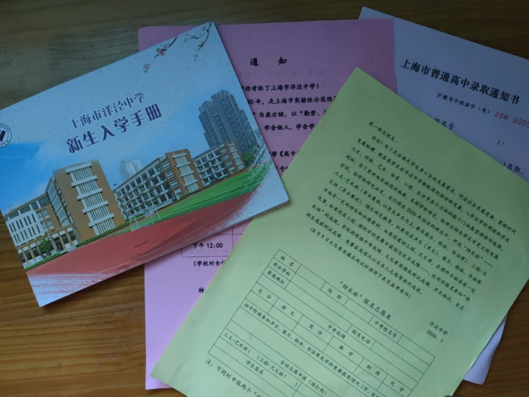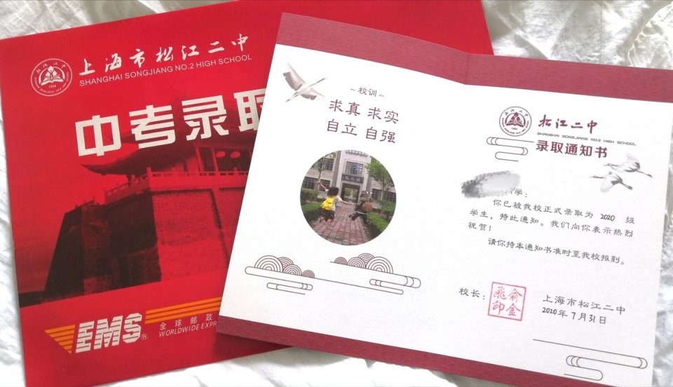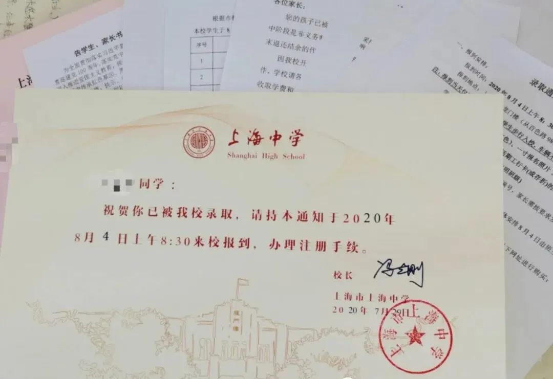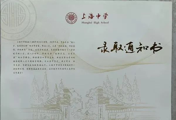 上海中学的录取通知书