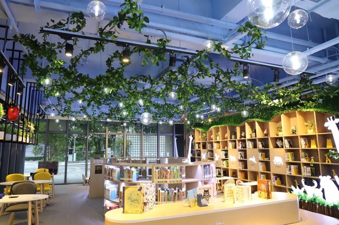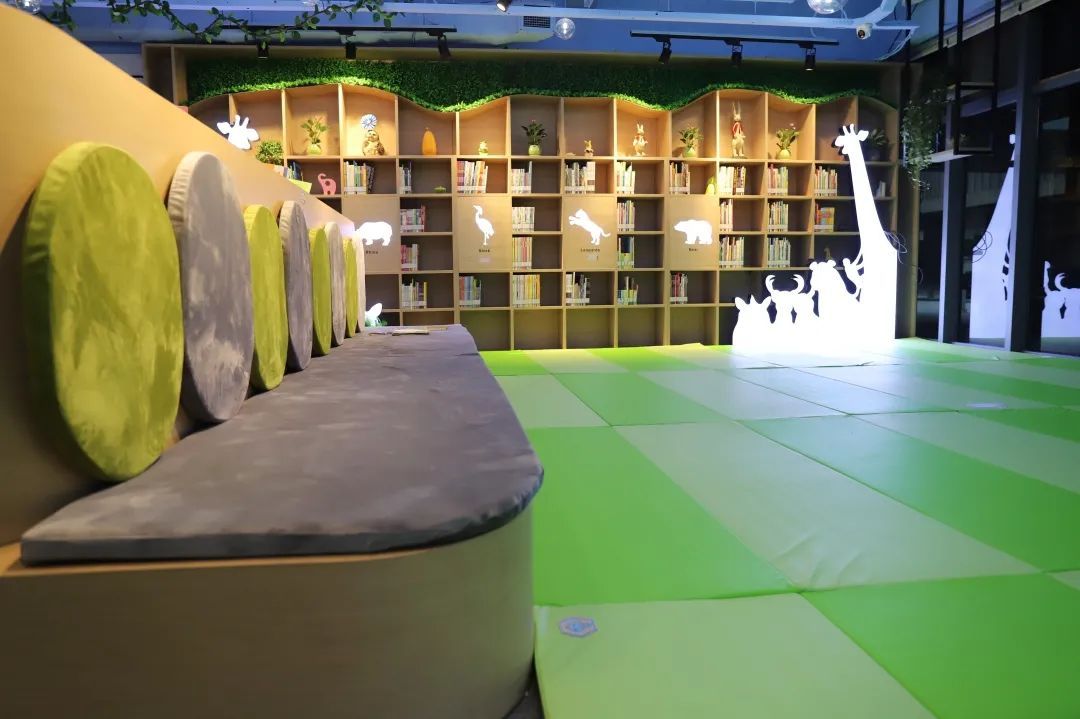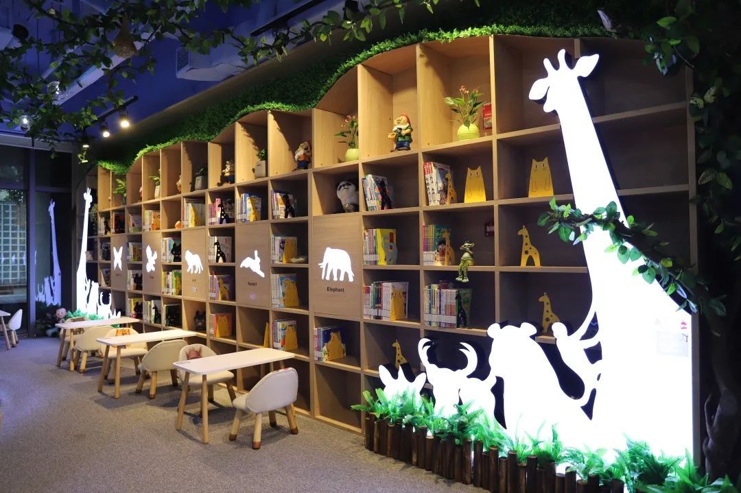 这是一个属于小朋友的图书馆,以大自然为主题,随处可见的小动物装饰,让小读者们仿佛置身于森林之中。