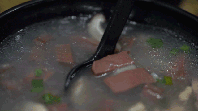 因为鸡是每天活杀的,鸡杂汤里的血和鸡肠也是当天自己做的,新鲜滑嫩~