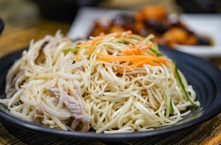 三丝冷面则是鸡丝、蘑菇丝、茭白丝配上花生酱,相比辣肉面更加清淡,花生酱的味道一入口就让人感觉“是这个味道”,是一个个蝉鸣不已的燥热夏天,上海人习惯吃的爽口滋味~